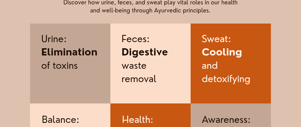· Significance: Proper elimination of Purisha is fundamental to health. It removes solid waste from the body, and its consistency, frequency, and ease of passage are key indicators of digestive health (Agni) and Vata balance. Accumulated stool is a primary cause of toxicity (Ama) and disease.